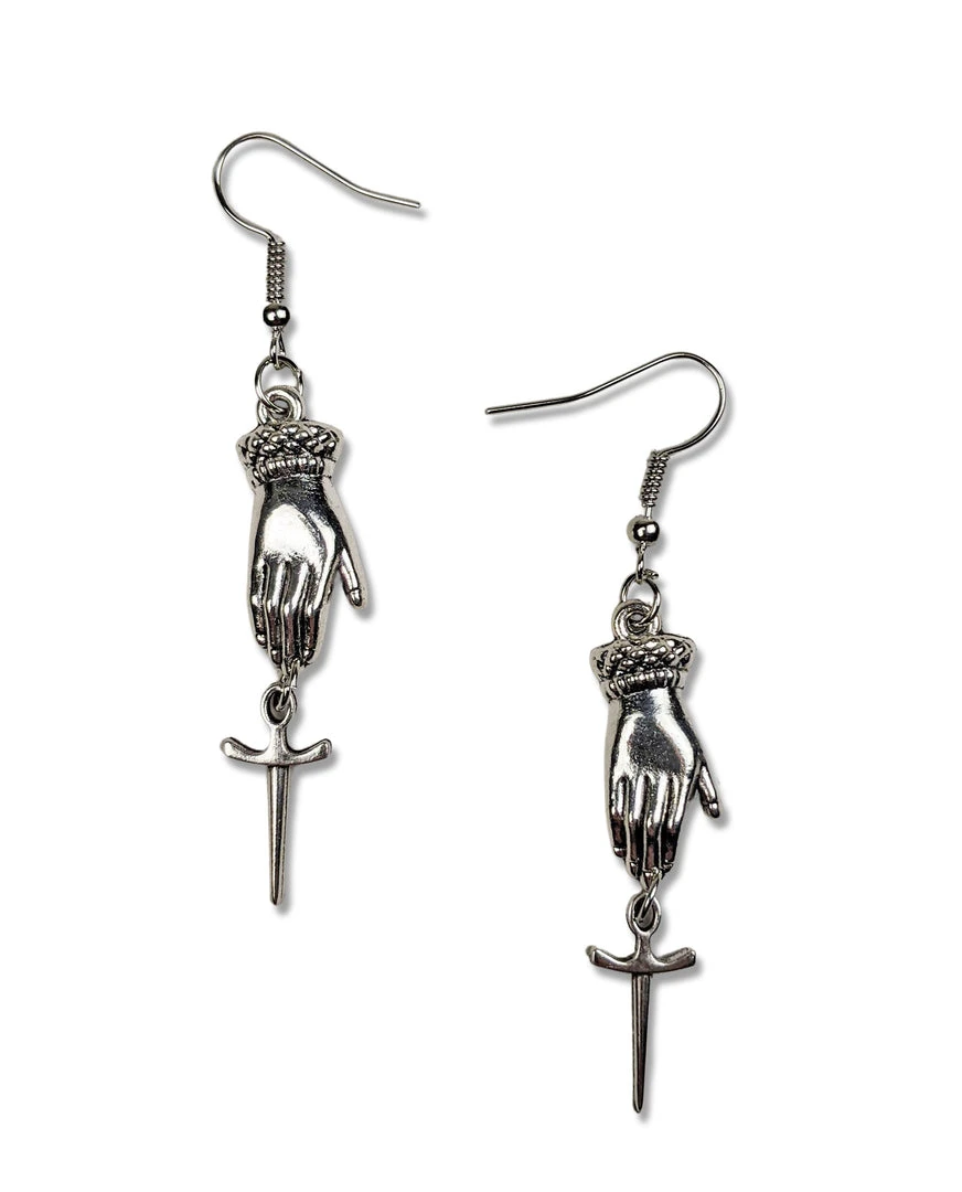 Features a black acrylic leaf like shape with a gold tone superimposed. The earrings have a post back.