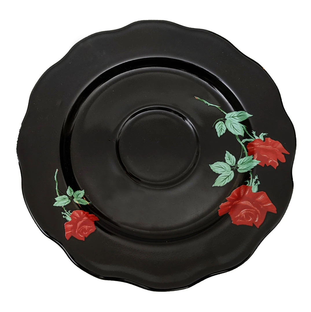 This hand-finished high-grade porcelain teacup and saucuer set is perfect for those who love a good cup of tea but with a little surprise. The “Agatha” novelty teacup features my original dark red rose pattern inspired by a traditional English pattern of the 1920s updated with a striking black background.