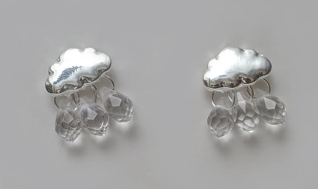 Dainty silver-tone earrings with crystal rain drops. Has a post backs. Height: 1/2″