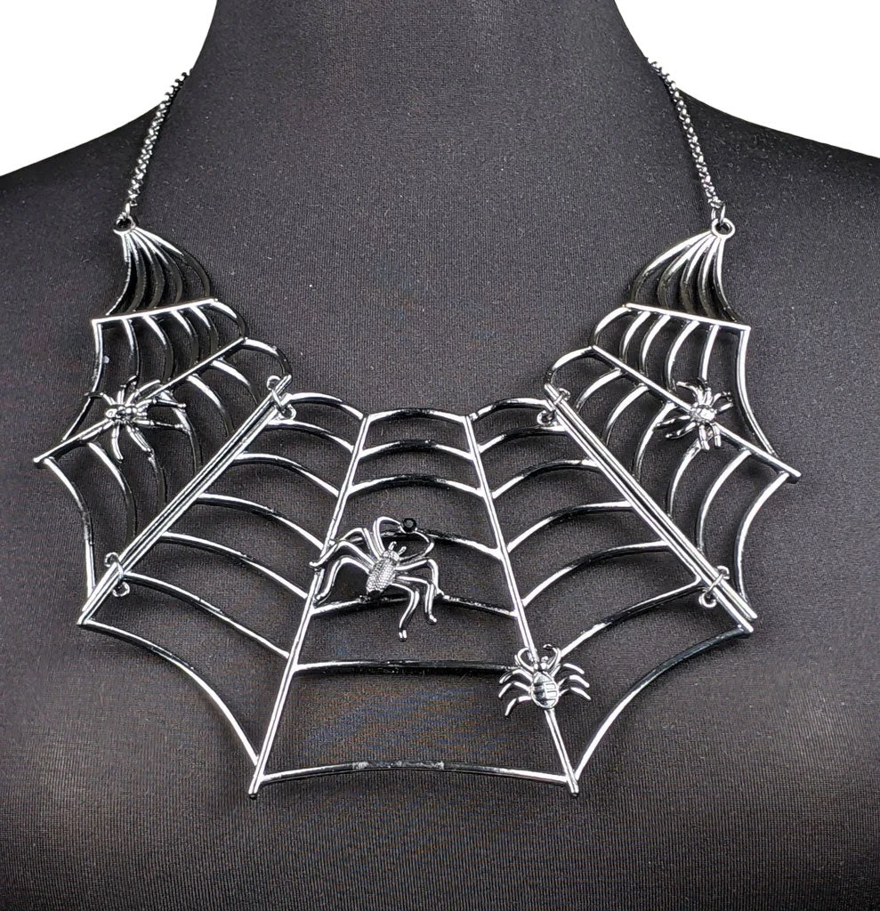 Our most dramatic vintage-inspired spider web necklace in silver-tone.